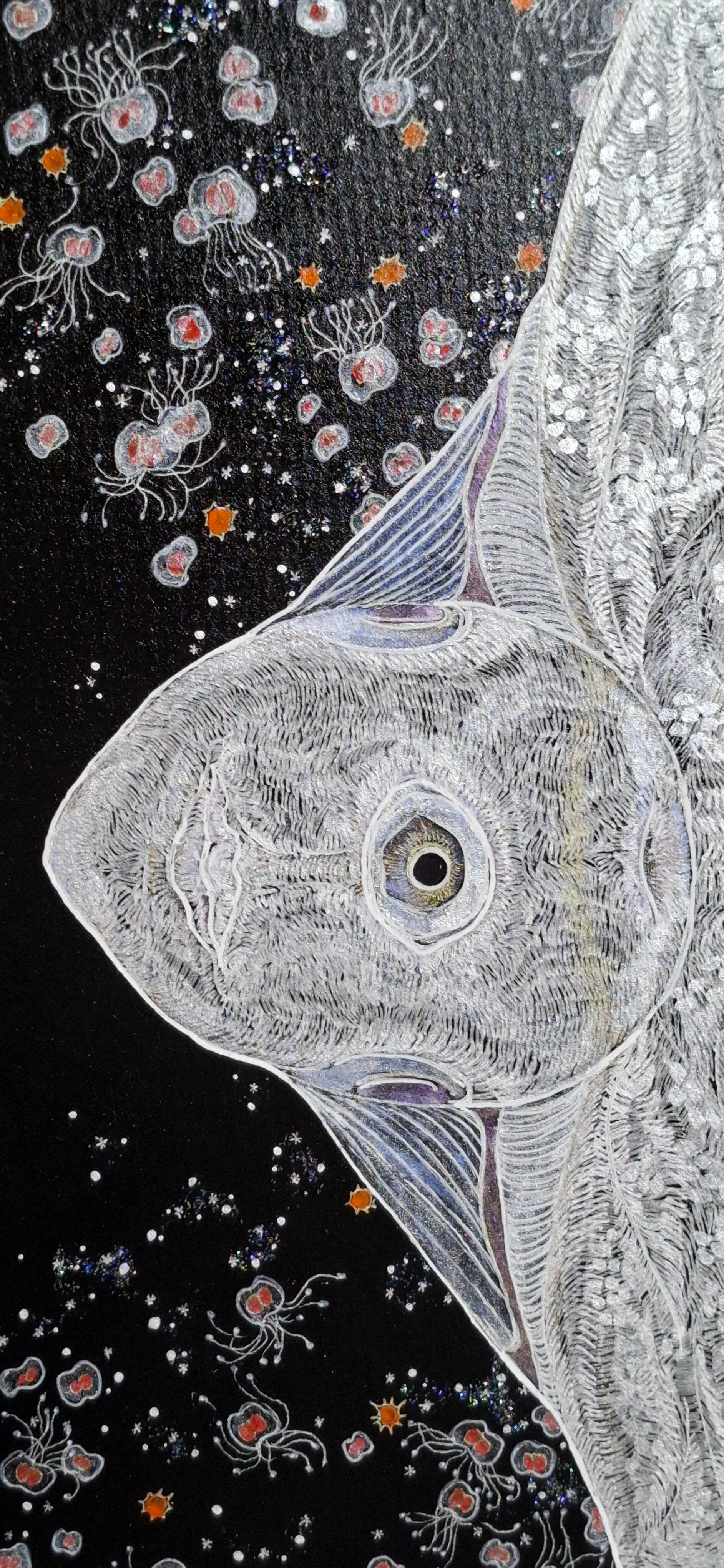 ・紙によるペン画主体の作品ですので、水分・直射日光・紫外線・調理による油煙・タバコの煙・ホコリやカビに敏感です。以上のような環境をある程度避け、額に入れた状態でご鑑賞いただけますと、より長く美しさが保たれます。