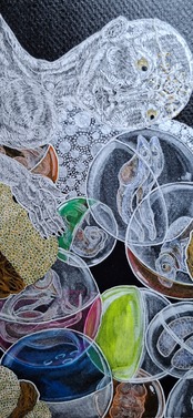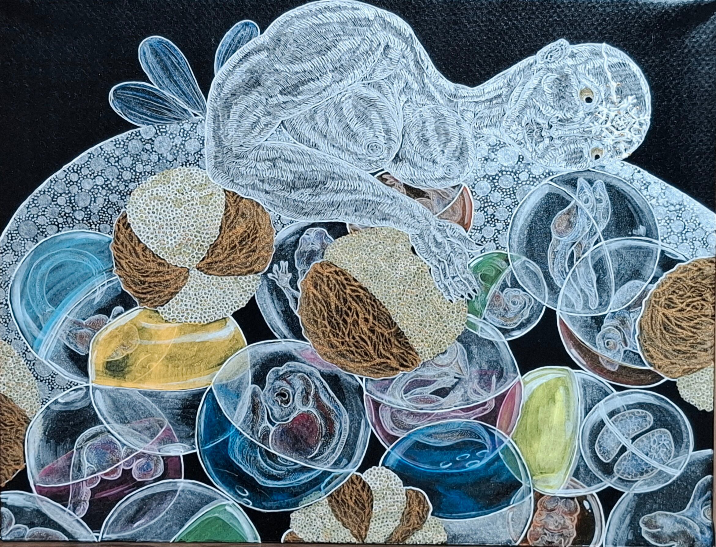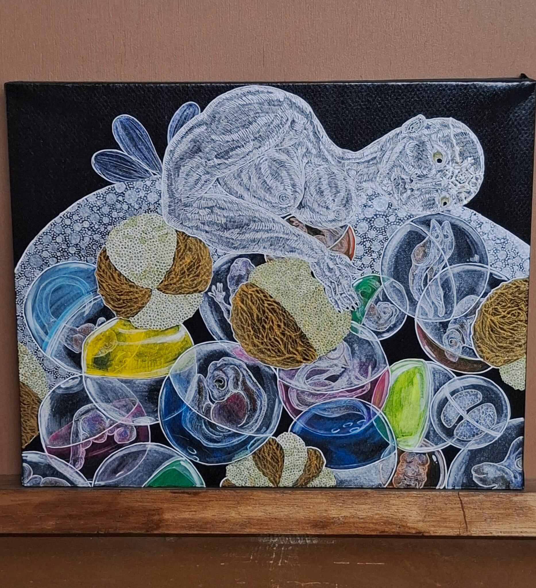 素材:木製パネルに紙、ペン、アクリル