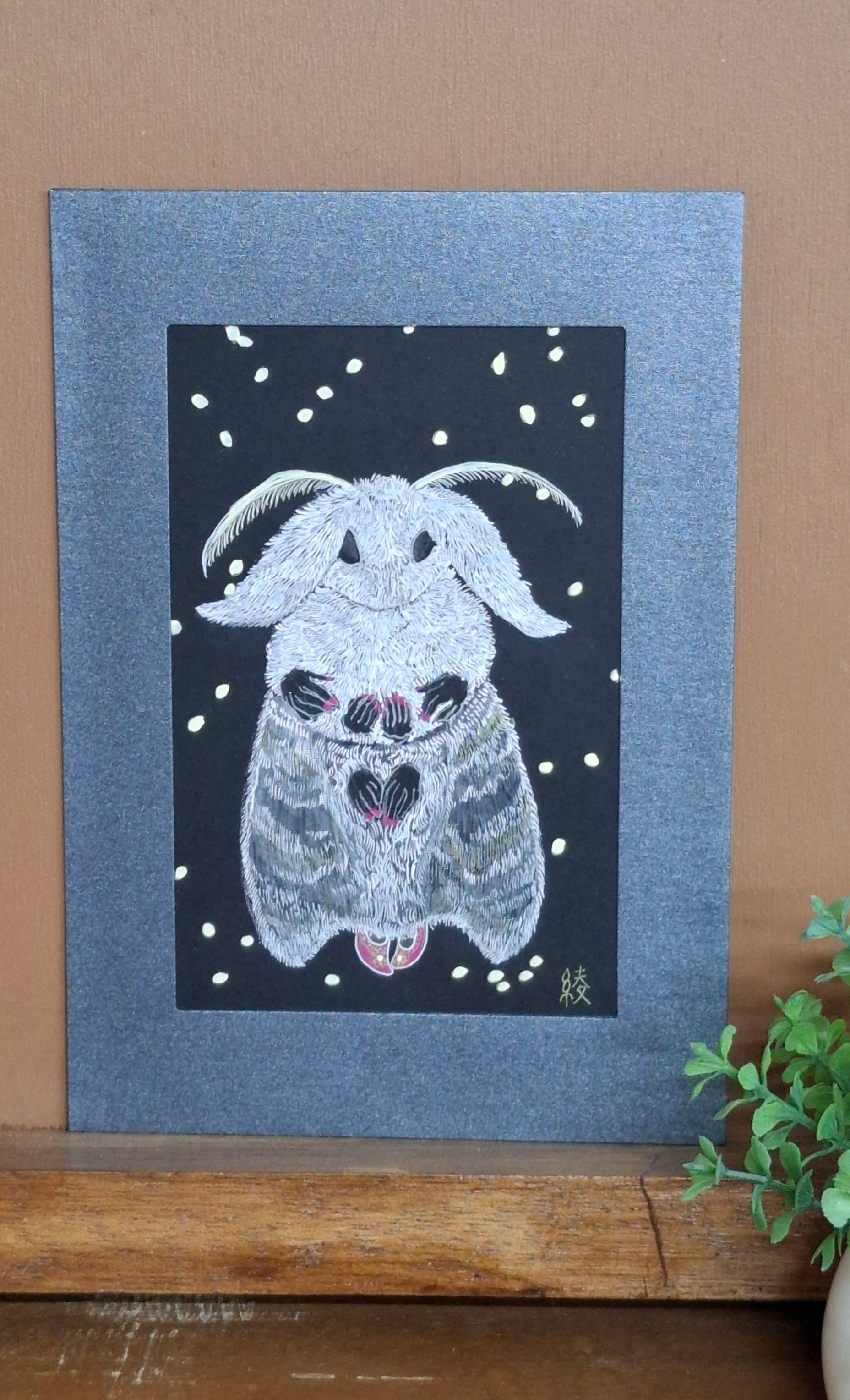・紙によるペン画主体の作品ですので、水分・直射日光・紫外線・調理による油煙・タバコの煙・ホコリやカビに敏感です。以上のような環境をある程度避け、額に入れた状態でご鑑賞いただけますと、より長く美しさが保たれます。