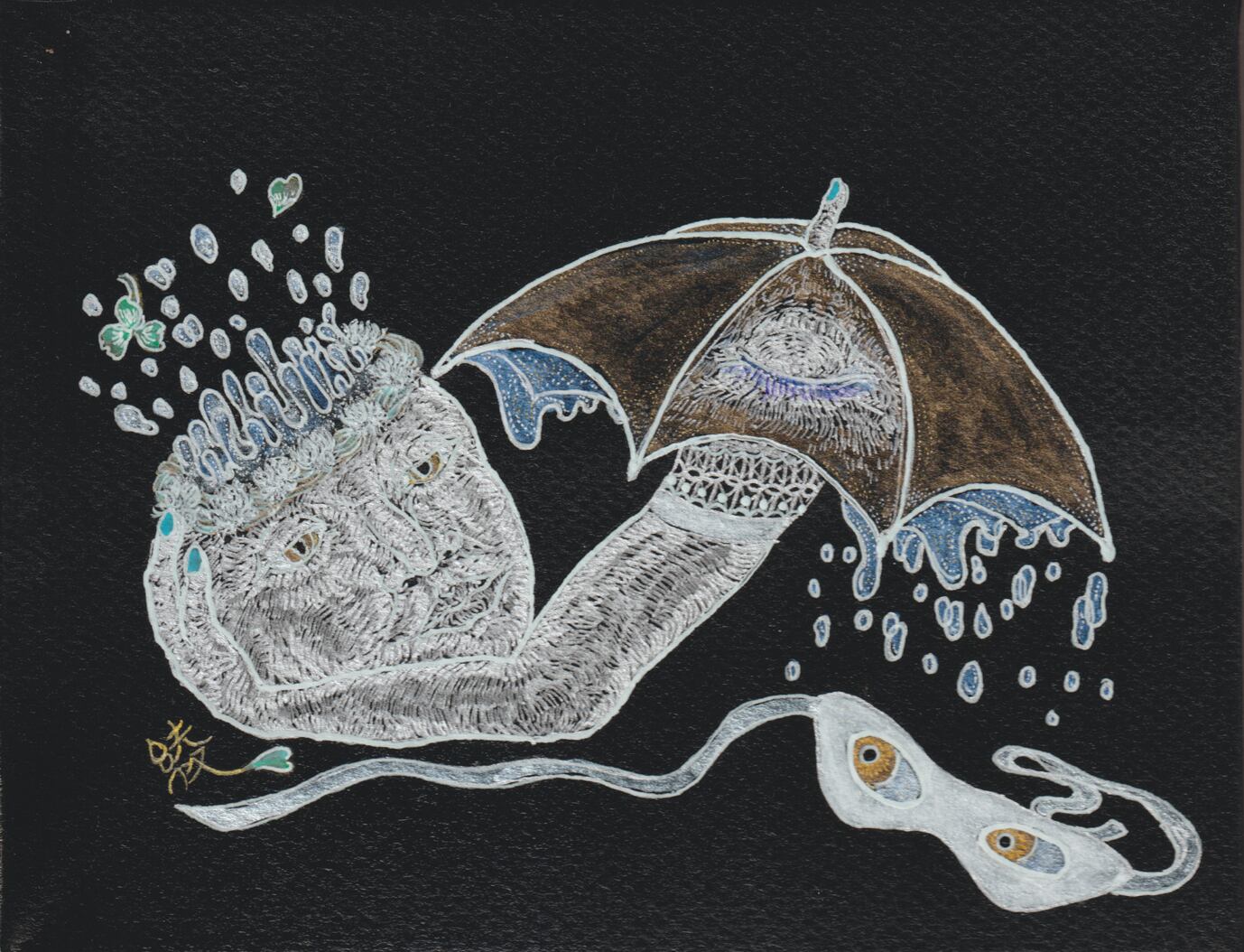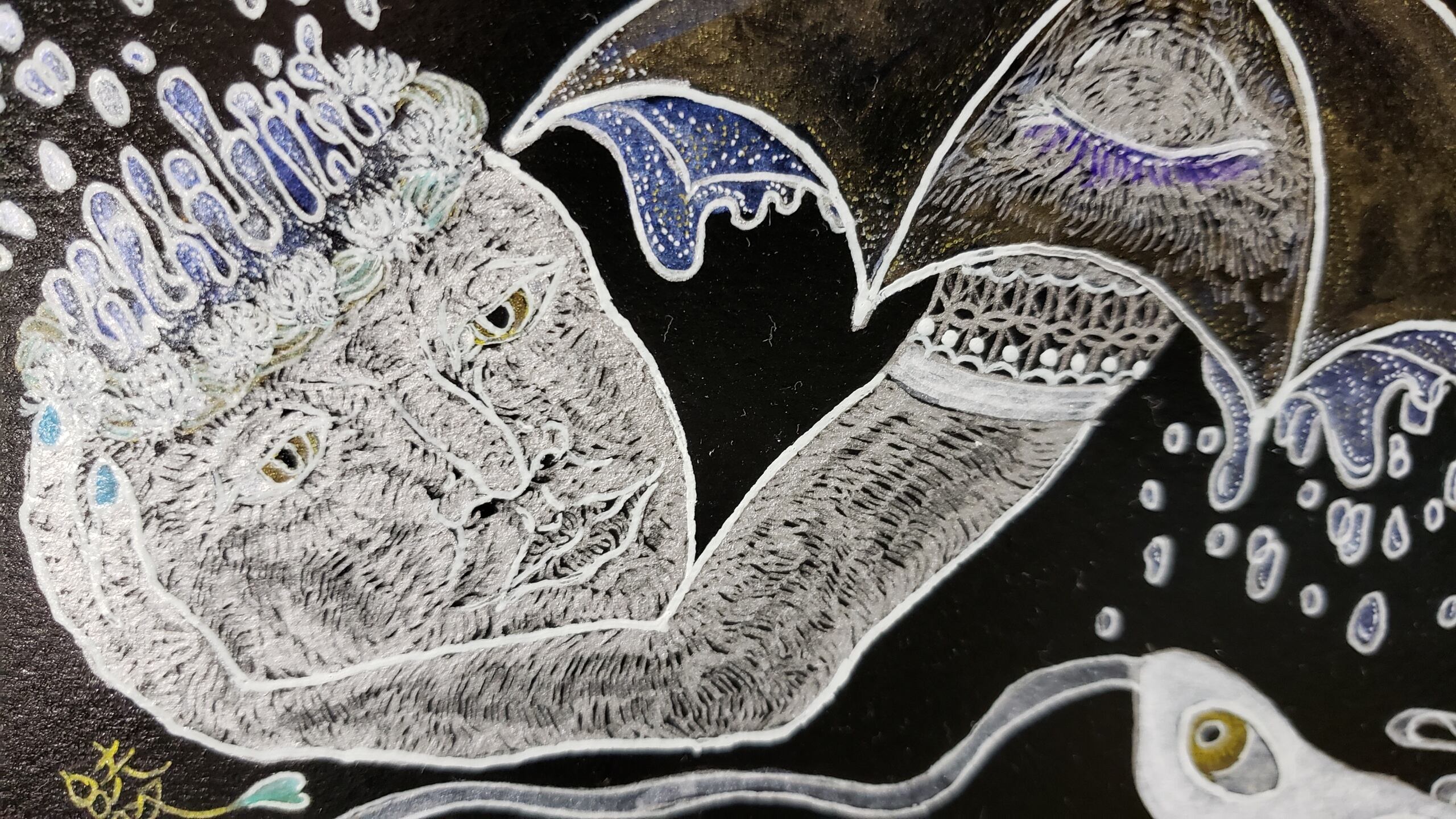 ・紙によるペン画主体の作品ですので、水分・直射日光・紫外線・調理による油煙・タバコの煙・ホコリやカビに敏感です。以上のような環境をある程度避け、額に入れた状態でご鑑賞いただけますと、より長く美しさが保たれます。