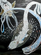 素材:木製パネルに紙、ペン、アクリル、メディウム、鉛筆